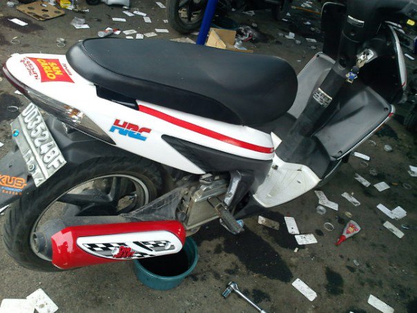 Setelah antri, motor langsung di kasi masuk ke area penggantian oli, tanpa basi basi, cess,,,,cesss,,,ces,,,, tidak kurang 5 menit, selesai…