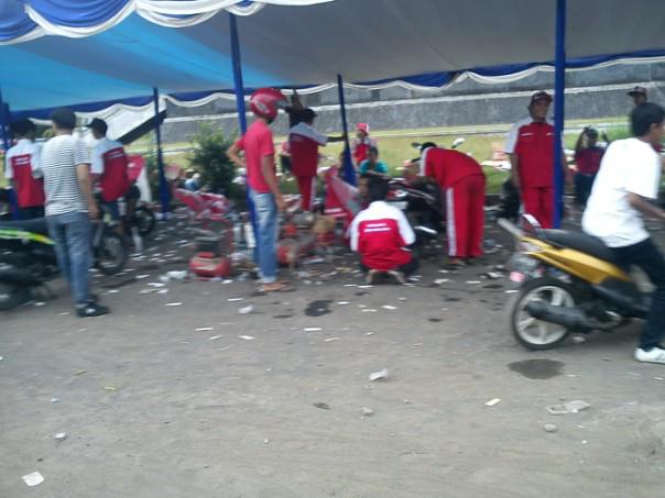 Ahad kemarin, pagi nya denger di radio ada acara pemecahan rekor muri untuk penggantian oli terbanyak bersama pertamina enduro matic. tidak ada rencana sih, tapi berhubung sorenya tidak ada kegiatan jadi tidak apa2 kesan liat-liat acaranya. dan ternyata sampai jam 5, target untuk makassar sekitar 8ratusan belum terwujud. langsung aja daftar pake sim dan stnk, di kasi sticker no urut dan antri..Gratisssss smuanya,..xixixi