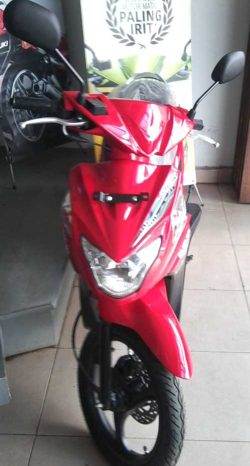 Lagi duduk-duduk ngopi dikit di depan kantor, ehh muncul suzuki nex warna merah milik seorang mahasiswi. Entah kenapa ataukah hanya perasaan ane saja yang berkata demikian. Model tebeng depan terutama lampu dan sein yang sangat mengganggu pemandangan motor metik ini. Dari samping sih lumayan lah, dari belakang juga rada rada mirip dengan mio j. tapi ini loh bagian depan,, kagak kuat lihatnya.