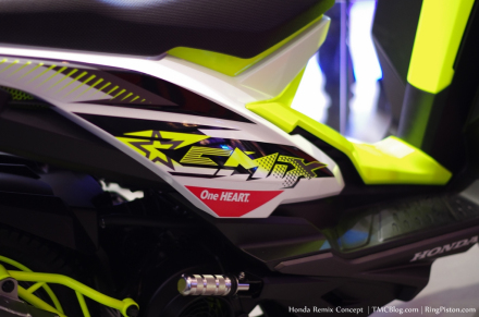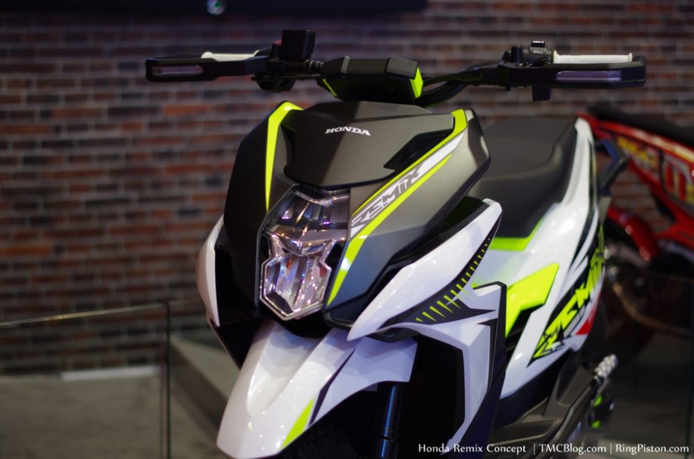 Yang pertama adalah sebuah skuter dengan nama REMIX. dari tampilan sangat-sangat dibenturkan dengan X-Ride. mulai dari tampang depan dan sampingnya. Belakang malah mirip Blade. Berikut gambarnya…