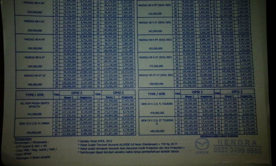 Nah, dimakassar sendiri, mazda berdiri sejak tahun 2010 yang di pegang oleh Kumala Celebes Motor dan berada di Jl. Pettarani makassar. Berikut Pricelist yang R2M dapat dari salah seorang Marketing Mazda Makassar.