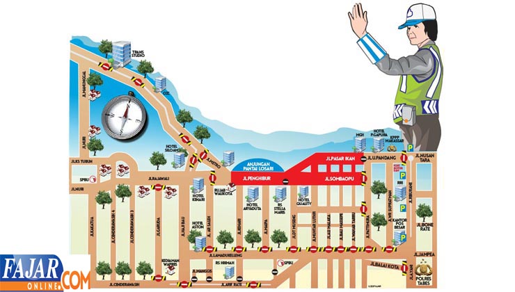 Inilah Jalan yang ditutup pada malam tahun baru 2016 di Makassar