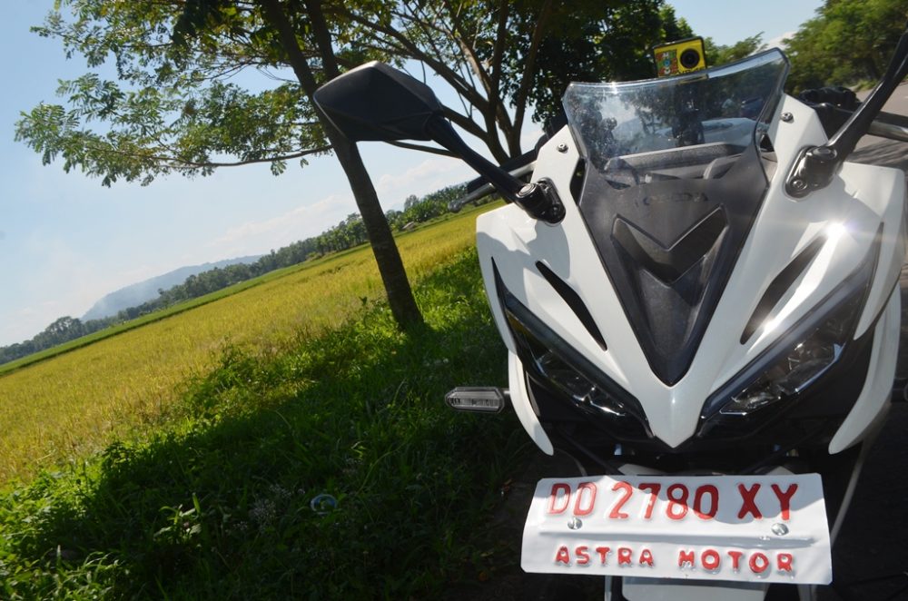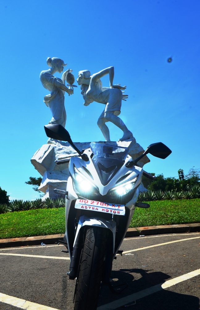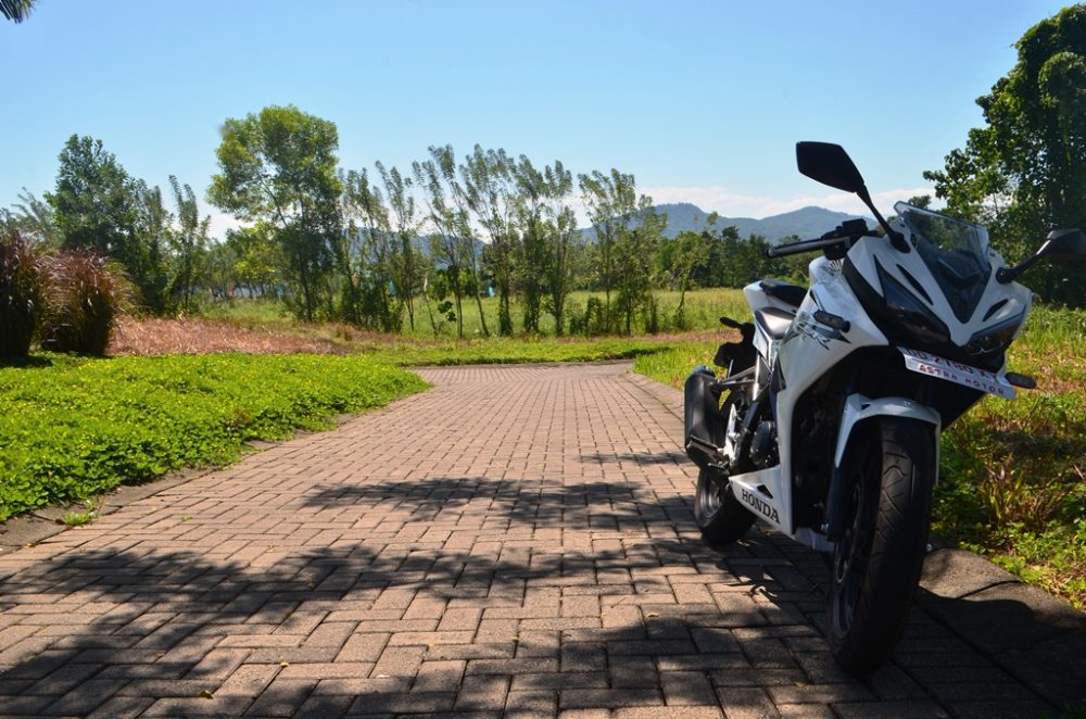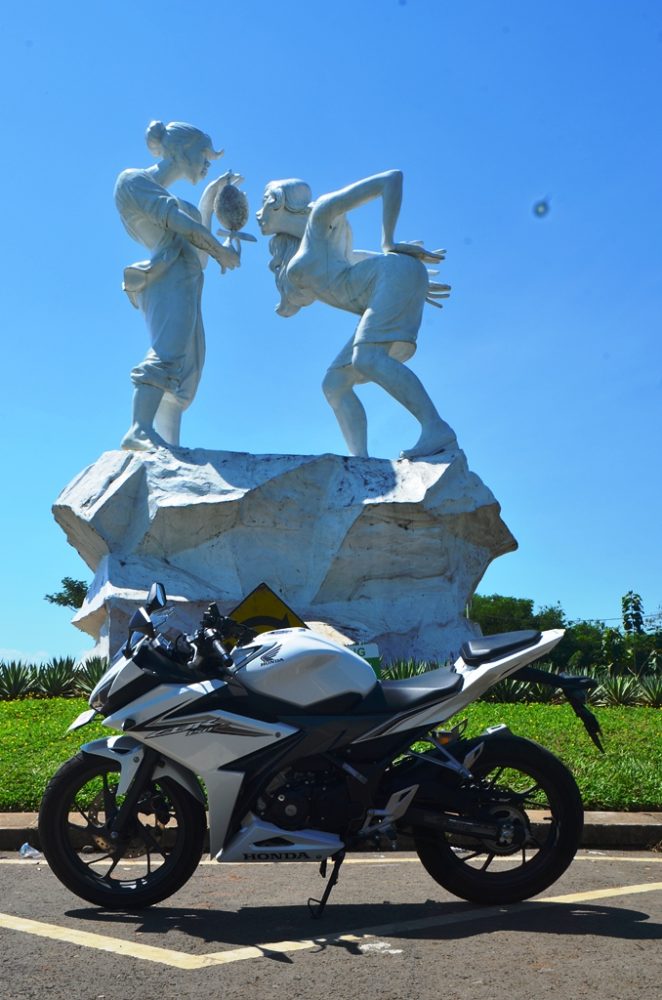 Untuk artikel kali ini, R2M ingin mengeksplorasi tubuhnya dulu plus riding singkat kesalah satu spot terbaik untuk mengabadikan gambar. Tempatnya adalah lapangan Golf Padivalley Pattalassang Gowa. Cukup unik sih tempat ini, patung-patung putih berukuran cukup besar menghiasi jalanan masuk lokasi, sangat cocok dengan si CBR yang juga berwarna putih ini.