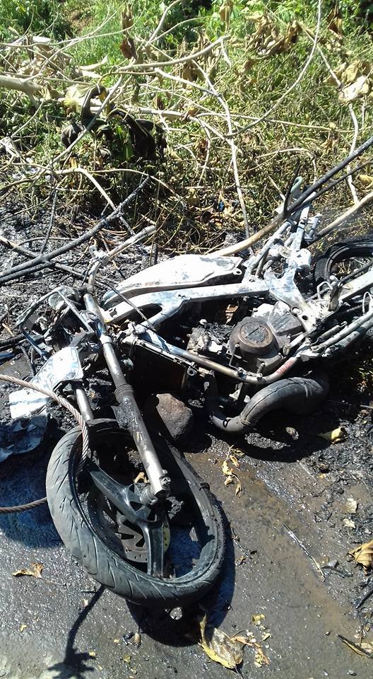 Kita lihat dulu Motornya yang sudah terbakar berikut.Bagai Ayam yang sedang dibakar, begitulah nasib Kawasaki ninja ini.