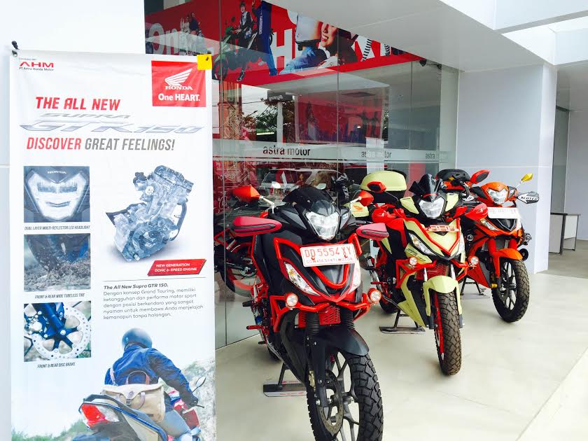 MAKASSAR – Mengaspal sejak Juni 2016 lalu, All New Supra GTR 150 kini semakin populer di Sulawesi, Astra Motor Makassar selaku main diler sepeda motor Honda untuk wilayah Sulawesi Selatan, Sulawesi Barat, Sulawesi Tenggara, dan Maluku juga semakin gencar melakukan banyak kegiatan promosi untuk sepeda motor dengan konsep sportcub ini.