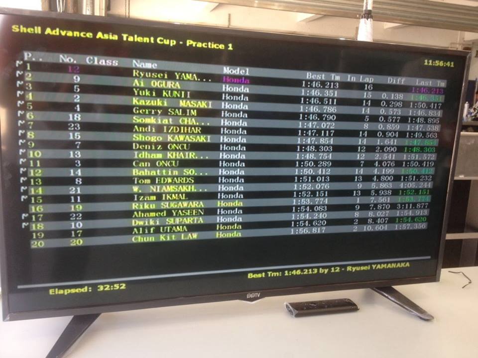 Dwiki Suparta posisi 18 dan Alif Utama posisi19.Para Pebalap Honda ini harus bertarung dengan 20 pebalap se Asia lainnya dimana pebalap-pebalap tanggung cukup banyak, seperti dari Jepang, Thailand dan Negeri Jiran Malaysia.