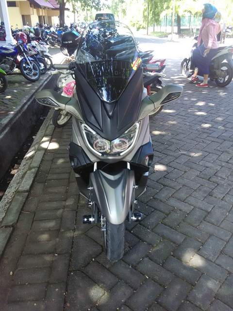 Abaikan mahasiswinya, dari depan wajah sudah berubah mulai dari penambahan windshiled, lampu yang diubah jadi proyektor plus angle eye, penutup sein custom, dan Spion variasi.
