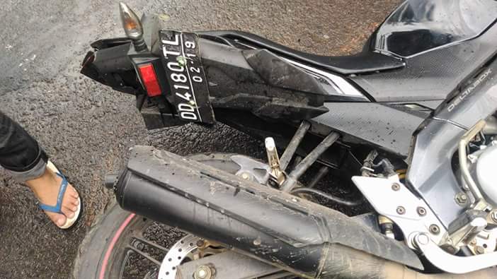 Kecelakaan kali ini terjadi di Jalan poros Gowa Takalar dimana pengendara motor Yamaha Vixion ini menurut warga menguntit dibelakang sebuah ambulance yang menuju ke arah Takalar, mungkin dengan alasan ambulance akan mendapatkan prioritas utama, pemuda inipun nekat untuk mengikuti dari belakang demi mempercepat perjalanan. Namun naas kondisi jalan yang menurut warga sekitar memang dalam kondisi yang berlobang membuat pemotor ini terpeleset jatuh yang kemudian dihantam dair arah berlawanan oleh mobil.lakalantas1Pemuda yang belum diketahui namanya ini langsung tewas ditempat kejadian karena  terlidas dibagian kepala, indo terkini, pemuda ini adalah orang Maros yang sedang bekerja di proyek PLTU Takalar.lakalantas3Dengan kejadian ini semoga kita lebih hati-hati dalam berkendara serta jangan sekali-kali menguntit atau ikut dibelakang mobil lain, jarak dengan kendaraan didepan harus diperhitungkan terutama untuk memberi waktu jika terjadi sesuatu dengan kendaraan didepan serta dapat mengetahui kondisi jalan didepan.