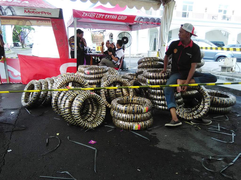 Masuk dengan rasa tidak bersalah untuk registrasi ternyata langsung ditanya dari club mana, R2M pun pusing namun langsung jawab seadanya “dari Club R2M” dan yess,,, lolos registrasi, kemudian syarat keduanya langsung disampaikan, yahh tidak apa-apa beli dua dengan harga 250ribu, namun syarat ketiganya ternyata bikin sedikit nyesek, R2M masih mencintai ban Zeneos di roda belakang yang lumayan ngegrip selama musim hujan ini dan sebenarnya ketebalan masih ada namun yahh sudah setahun lebih sih dan akhirnya harus ikhlas untuk diganti dan diambil. 😀