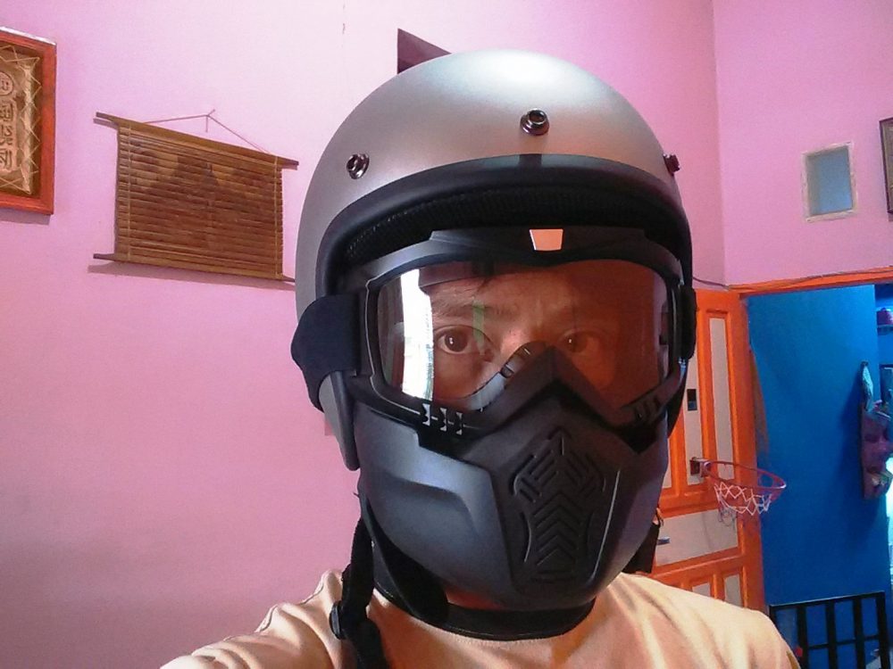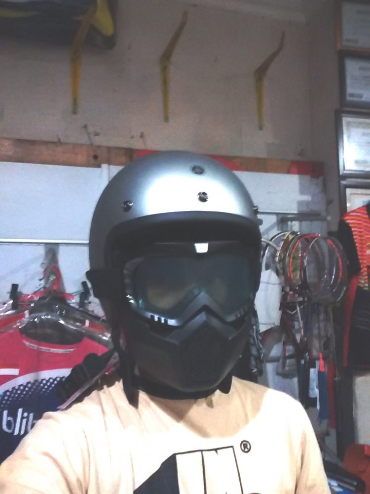 Terdapat 2 bagian utama dari helm ini yaitu Batok Helm yang sepertinya bisa juga dipakai untuk helm BOGO karena tersedianya kancing-kancing, serta google mask yang merupakan gabungan antara google atau kaca mata yang mirip kacamata selam, serta masker untuk menutup bagian hidung kebawah sehingga kesemuanya menjadikan helm ini seperti helm full face bergaya Pilot Pesawat Tempur.