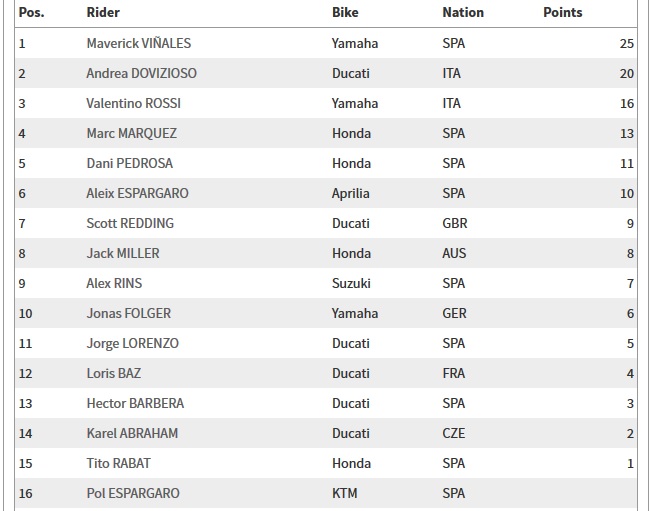 Berikut hasil resmi race motoGP Qatar 2017 semalam.”