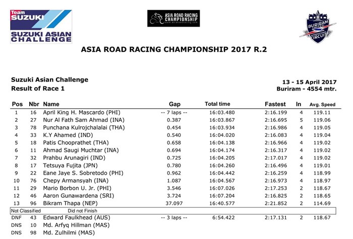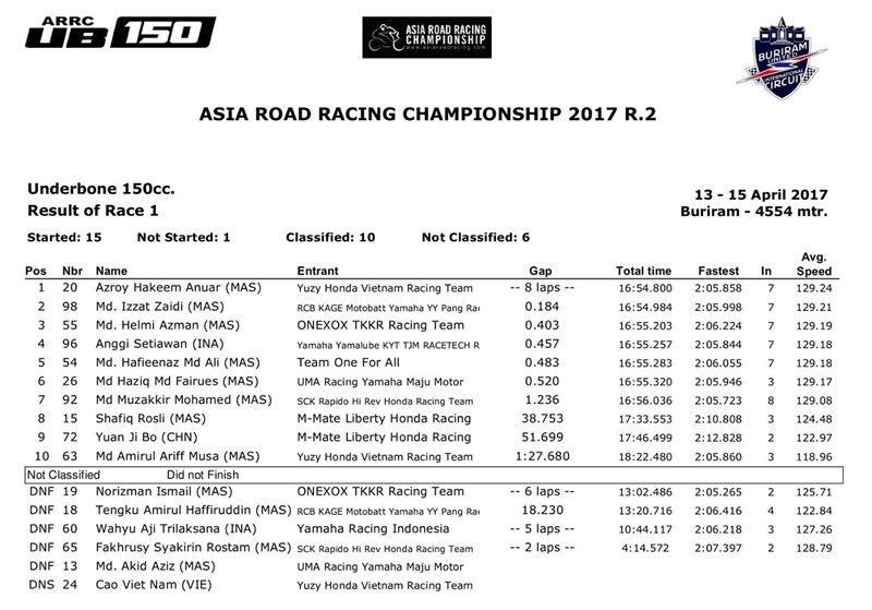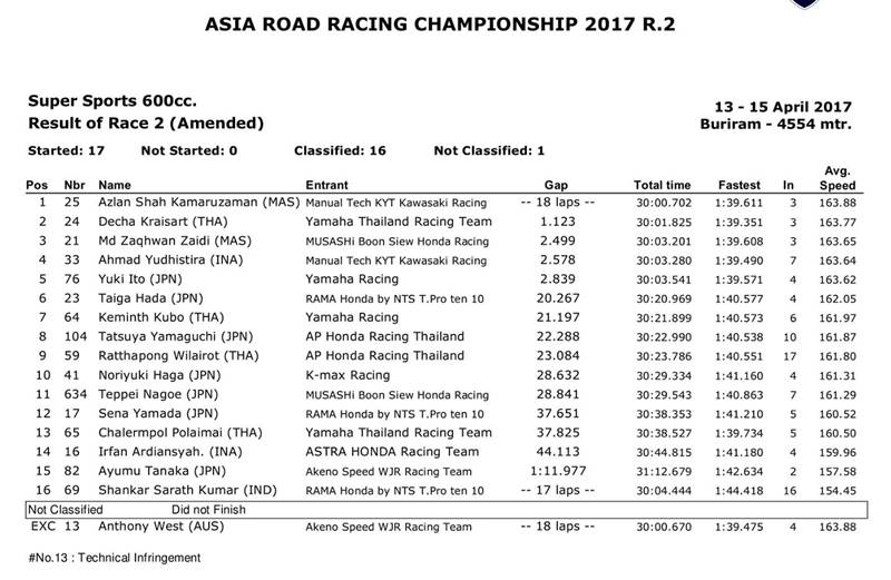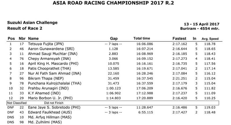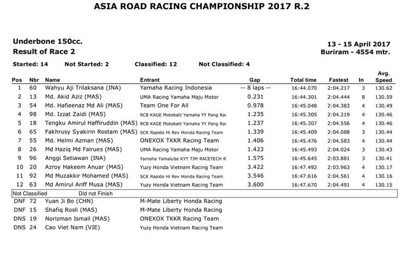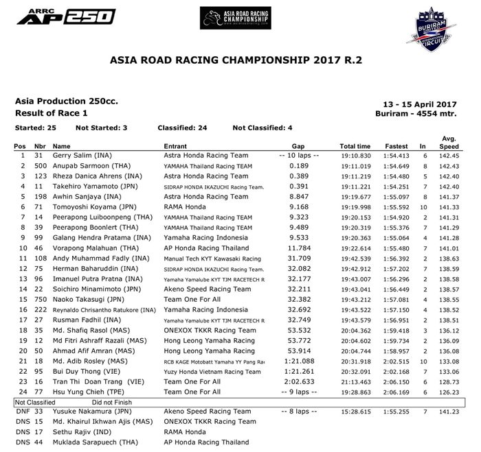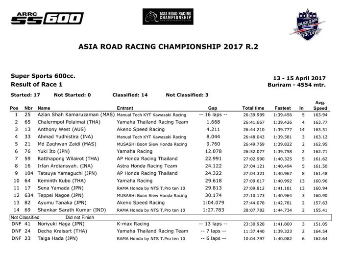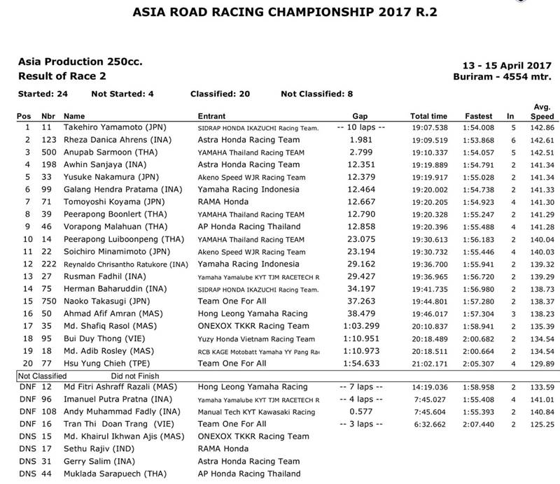 Hasil Lengkap Race 1 dan 2 ARRC Buriram Thailand 2017