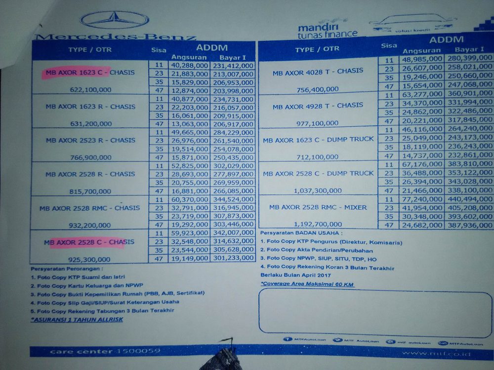 Mengintip Harga Serta Simulasi Kredit Mobil Truk Mercedes Benz Wilayah Makassar