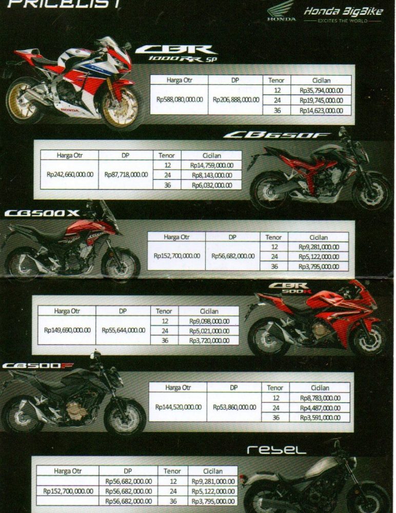 Yup, berikut daftar harga serta simulasi kredit dari Honda Rebel ini untuk wilayah Makassar berserta big bike honda lainnya yang tergabung dalam line up Big Wing.