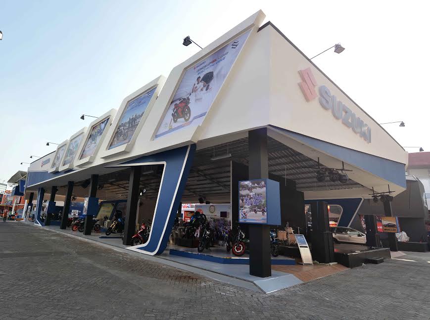 Berdiri dilahan seluas 800 M2 booth Suzuki Indonesia hadir dengan mengusung tema “Urban Sport” dengan design modern dan dinamis. Booth yang didominasi oleh warna putih ini akan menghadirkan produk-produk terbaik bagi pengunjung mulai dari motor, mobil, hingga mesin tempel (Outboard Motor). Tercatat total sebanyak 30 unit produk motor dan 11 unit produk mobil Suzuki dipamerkan.