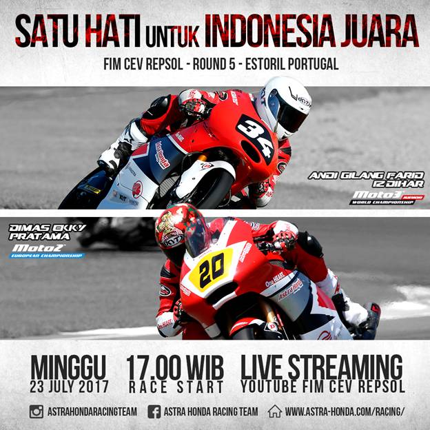 CEV moto2 dan Moto3 kini telah mampir di sirkuit Estoril Spanyol 22-23 Juli 2017 sebagai rangkaian seri ke 5 FIM CEV Repsol tahun 2017 tahun ini.