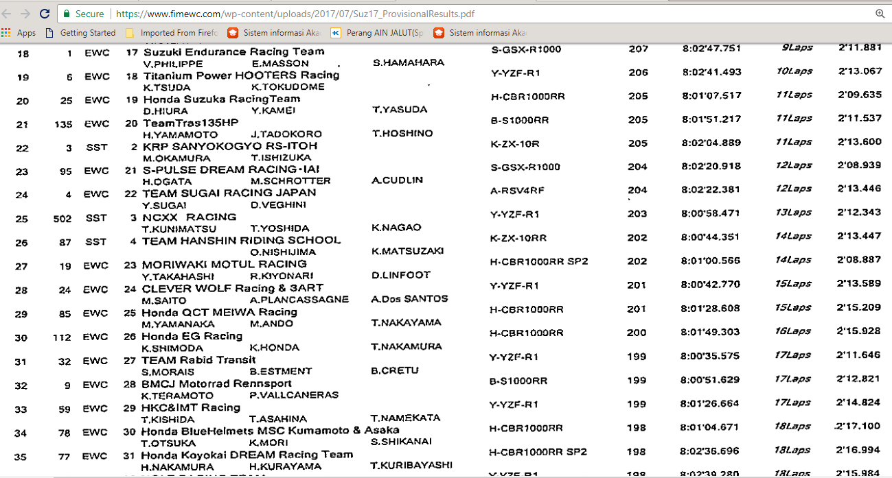 Berikut hasil lengkap balap ketahanan Suzuka 8 Hours 2017.
