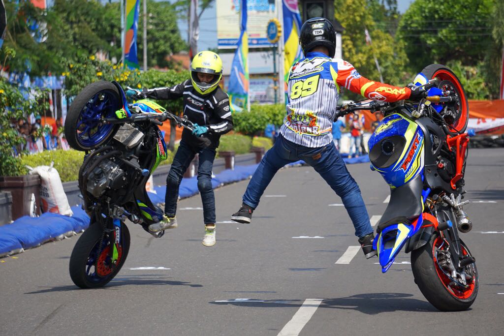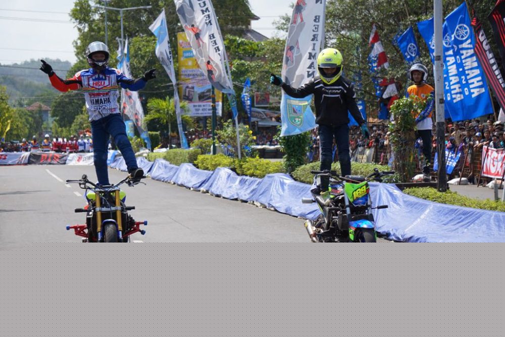 Wawan menggenjot YZF-R6 dan Wahyu dengan MT-25 beratraksi freestyle di lintasan sirkuit Alun-Alun yang dipadati penonton. Keduanya tandem menunjukkan kelihaian stoppie, wheelie chair, wheelie circle, double circle, no hand dan trik akrobatik lainnya.
