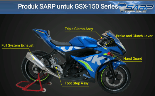 Suzuki GSX yang terdiri dari 2 tipe ini yaitu GSX R 150 versi fairing dan GSX S 150 versi naked memang patut untuk diperhitungkan sepak terjangnya semenjak dipasarkan awal tahun ini, setelah peluncuran secara resmi, PT. Suzuki Indomobil Sales ikut memberikan pilihan part racing resmi dengan label SARP Cobra Series sebagai pilihan bagai konsumen untuk menaikkan performa dan pastinya tampilan GSX 150 ini.