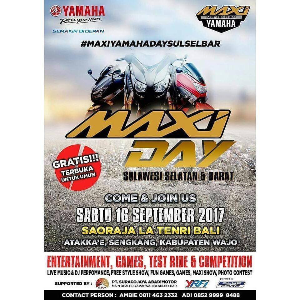 Khusus tahun ini, Maxi Day Sulawesi selatan dan Barat akan diadakan pada hari Sabtu ini tanggal 16 September 2017 yang bertempat di Saoraja La Tenri Bali Sengkang Kabupaten Wajo Sulawesi Selatan, Kabupaten penghasil Sutra ini berjarak kurang lebih 200km dari Kota Makassar, mungkin ditempatkan di tengah-tengah demi mengakomodir para pecinta Maxi Scooter yang ada di wilayah Sulawesi Barat dan Tenggara.