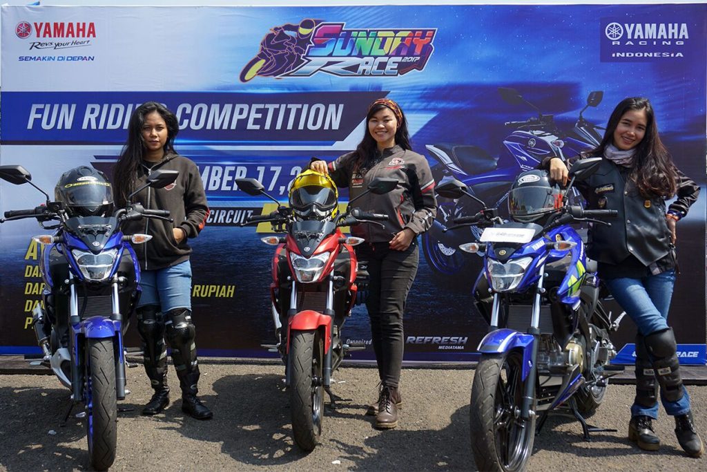 Dhiaz Nivana, Risma Trutus, Anisa Zulva Mirazqi Januar, tiga lady bikers mengendarai All New Vixion R yang disediakan Yamaha saat victory lap. Mereka sendiri punya Vixion yang digunakan sehari-hari.