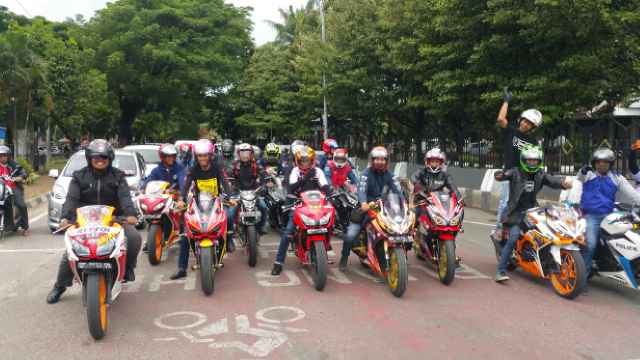 Akhirnya terkumpullah ratusan pengguna CBR series mulai dari CBR 150 CBU, CBR 150 lokal, CBR250 CBU, hingga CBR250RR, mereka mengatas namakan diri CBR Celebes Family.