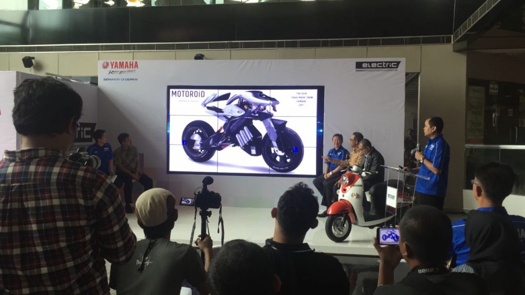 Roda2makassar.com – PT. Yamaha Indonesia Motor Mfg. (YIMM) menggelar konferensi pers “Market Trial” sepeda motor listrik Yamaha di kawasan Kuningan, Jakarta, Rabu 1 November 2017. Acara ini diadakan dalam rangka memperkenalkan sekaligus uji coba motor listrik Yamaha.