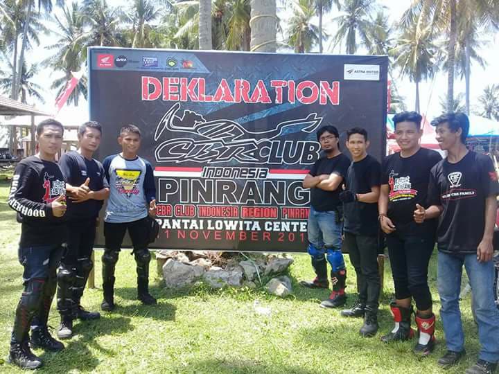 Kebersamaan yang mereka jalin selama ini membuahkan hasil dengan meriahnya deklarasi CCI Pinrang 11-12 November 2017 kemarin, Club CBR dari pesisir selatan pulau sulawesi pun ikut ambil bagian seperti COC Bulukumba dan COC Takalar, tak sampai disitu dari Toraja dan Luwu pun ikut ambil bagian dalam acara kopdar gabungan ini. Berikut para club yang hadir dalam acara Deklarasi CCI Pinrang ini sekaligus kopdargab CBR se Sulawesi.