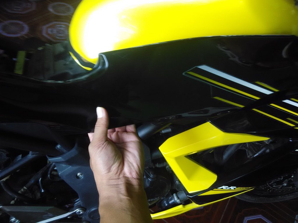 Gimana, gampang kan, setelah itu untuk buka tangki, tinggal membuka kap samping yang cukup panjang, tinggal lepas keluar dan dilanjutkan menarik kebelakang untuk melepas dari pegangan di tangki.