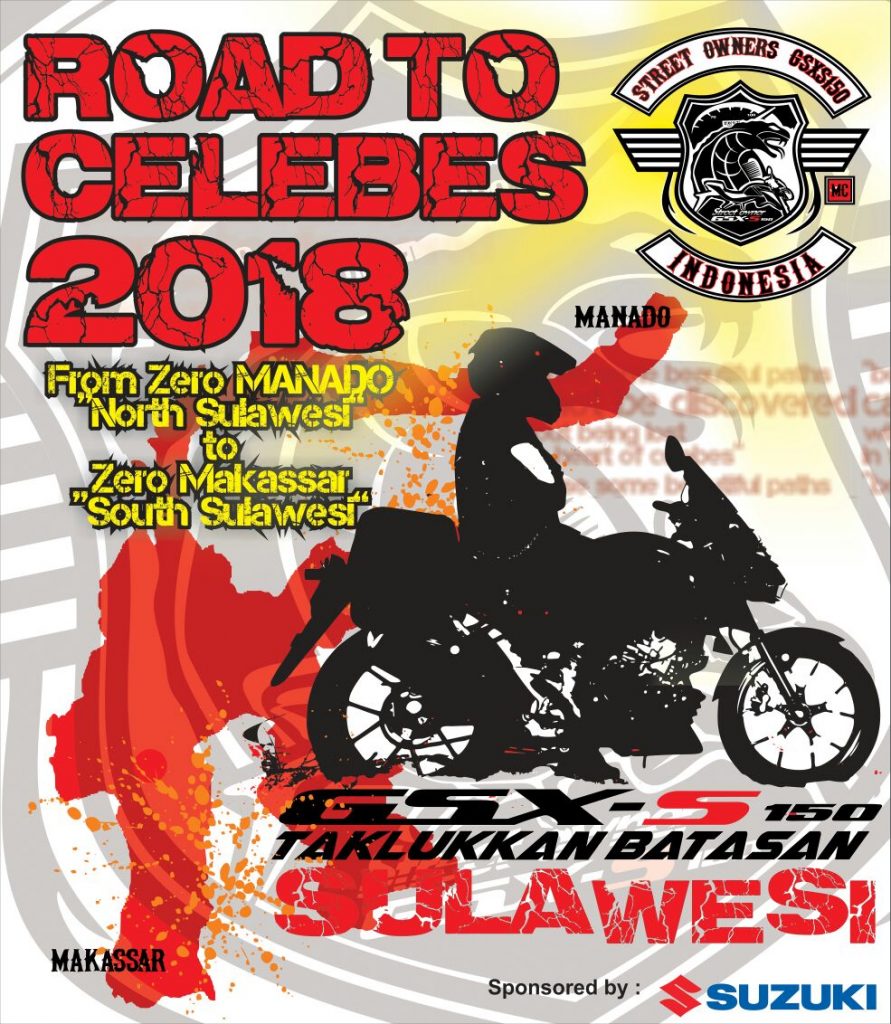 Rombongan Touring Road Celebes 2018 dilepas di depan Dealer Suzuki Malalayang PT. Sinar Galesong Mandiri Sulawesi Utara oleh Pimpinan Operasional Wilayah, Ardhy Widyananto dan Jefry Bujung selaku Supervisi Marketing pada hari sabtu 20 Januari 2018. Touring tersebut dilakukan oleh 4 orang bikers yang terdiri dari 2 Motor Suzuki GSX-S150 dari komunitas Street Owners GSX 150 Indonesia yang dikendarai oleh bro Roy Enarson Mentang sebagai ketua dan Bro Jecki Momongandan. Mereka turut ditemani oleh 2 motor GSX-R150 dari GSX 150 Club Indonesia, yaitu Bro Joan Liow dan Bro Dika Rivai. Touring Road To Celebes 2018 ini akan melewati 4 provinsi di Sulawesi antara lain Provinsi Gorontalo, Sulawesi Tengah (Kota Palu), Sulawesi Barat (Kota Mamuju) dan terakhir Sulawesi Selatan (Makassar).