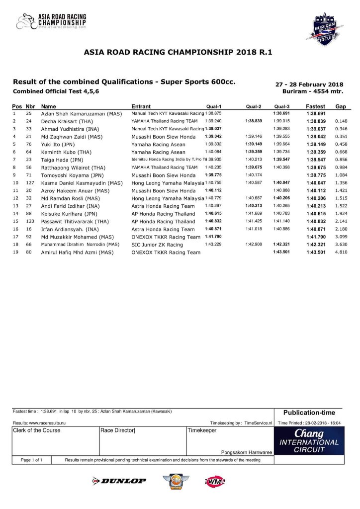 Roda2makassar.com – Kemarin 27 dan 28 Februari 2018, tes pramusim Asia road race championship telah berlangsung di sirkutit Chang International Thailand. gerry salim juara ap250 arrc