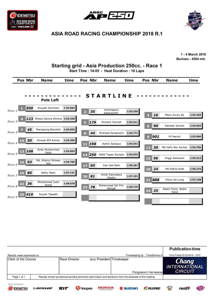 Starting Grid Kelas AP250 ARRC Seri I Buriram Thailand 2018
