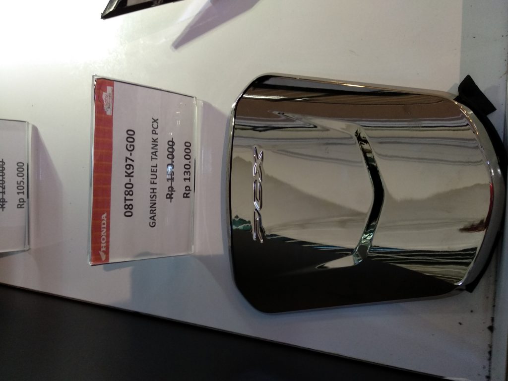 Untuk memenuhi hasrat modifikasi para pemilik pcx, honda juga menyiapkan genuine accesories untuk motor ini antara lain high windscreen, garnish headlight, garnish fueltank cover, garnish tail light, end cup muffler dan panel step floor yang dibanderol mulai harga 120ribuan.