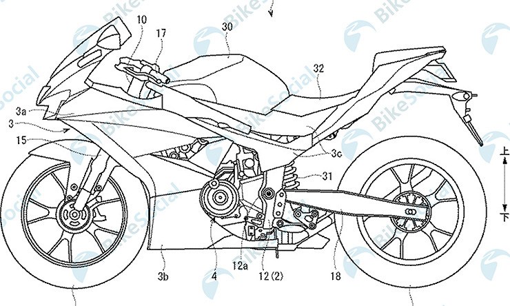 Sekilas gambar patent ini memang sangat mengarah kepada suzuki, coba lihat model velg, persis sama dengan Suzuki GSX R150 yang berbentuk huruf Y, begitupu dengan desain bak kopling dan bak magnet, 11 12 lah modelnya.