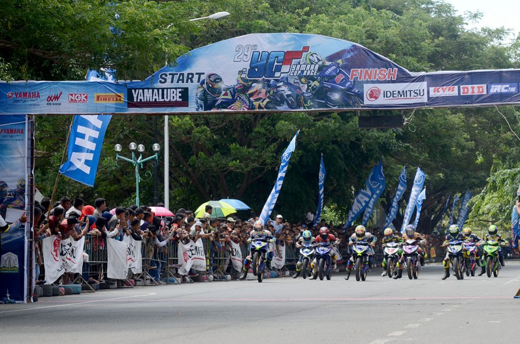 Roda2makassar.com – Pagelaran seri ke-3 Yamaha Cup Race 2018 (YCR 2018) di Sirkuit Stadion Harapan Bangsa, Banda Aceh (30 Juni-1 Juli 2018) menjadi momen kompetisi yang khusus. Bukan hanya karena hadirnya 97 starter yang meramaikan 10 kelas yang tersaji, tetapi saat bersamaan adalah Hari Ulang Tahun (Ultah) Yamaha Motor Company (YMC) yang ke-63.