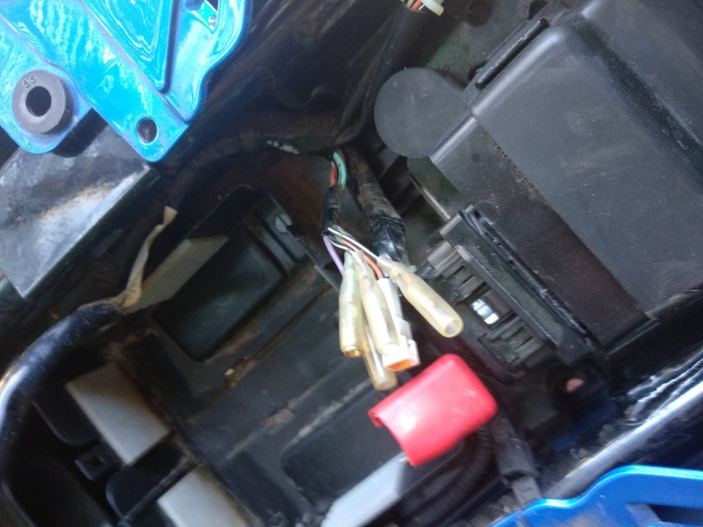 Kabel ini tersambung ke sistem kelistrikan dengan sambungan yang berada di bawah jok belakang Aki, jadi buka saja jok depan dan temukan kabel seperti dibawah.