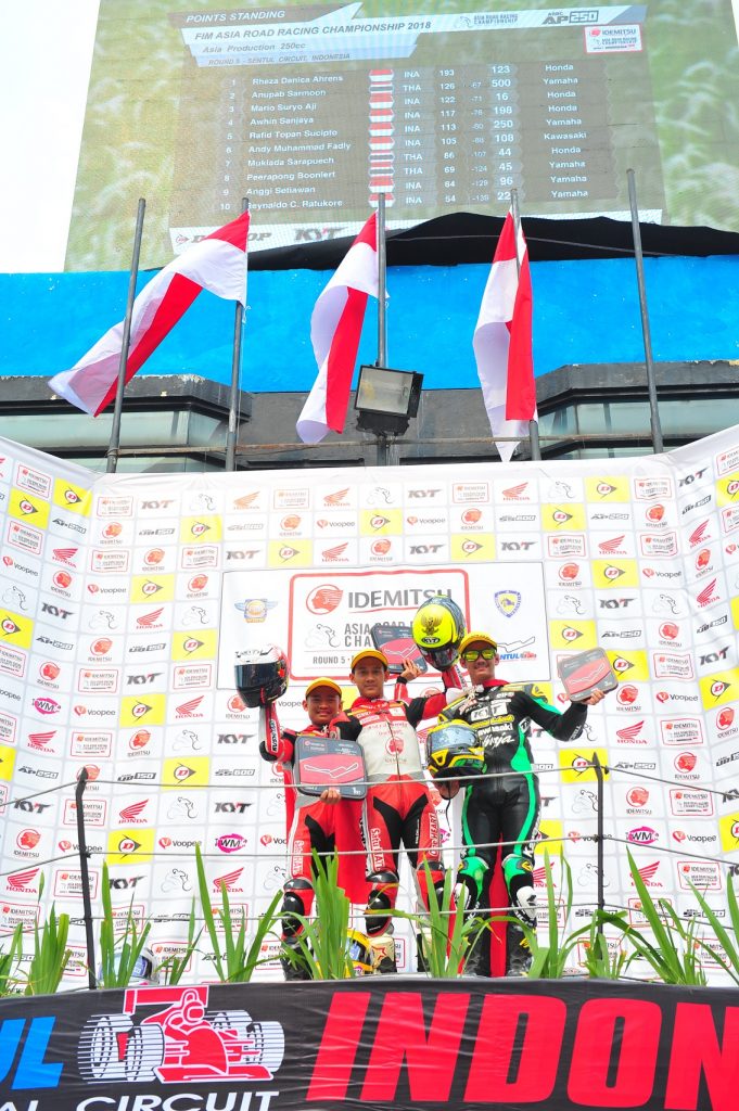Meneruskan kesuksesan gemilang di balapan pertama kelas AP250, Rheza dan Awhin kembali membuktikan kehebatan performa Honda CBR250RR yang tak terbendung di Sirkuit Sentul. Rheza mengalami start yang kurang baik sehingga pebalap asal Yogyakarta ini harus rela disalip pebalap di belakangnya. Sebaliknya Awhin mengalami start yang mulus sehingga dapat melaju di depan. Akan tetapi, dengan perlahan Rheza dapat menguasai kembali jalannya balap dan bergabung dengan dua rekan setimnya di barisan terdepan. Sayang sekali di lap 8 Mario terjatuh sehingga meninggalkan dua rekannya bertarung memperebutkan podium pertama. Drama saling menyalip kembali terjadi di lap terakhir, Rheza berhasil mengambil celah dari Awhin menjelang tikungan terakhir. Menjelang garis finish, Awhin berhasil merebut posisi pertama di trek lurus dan menyentuh garis finish di depan Rheza.