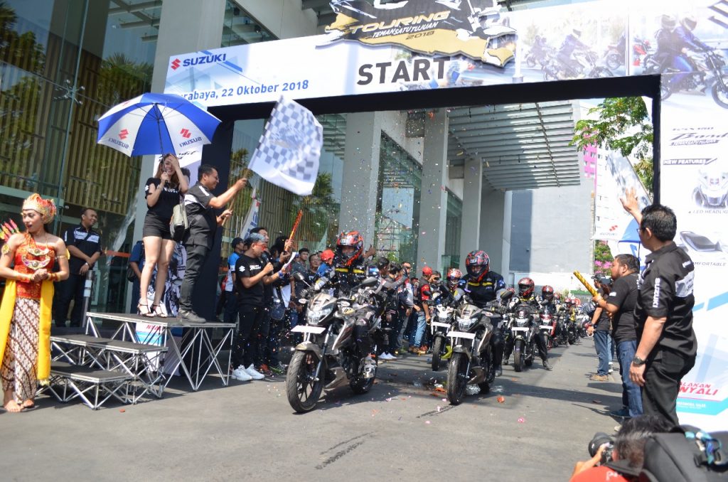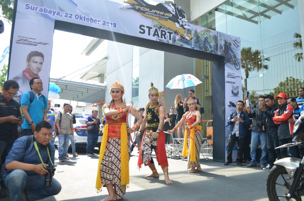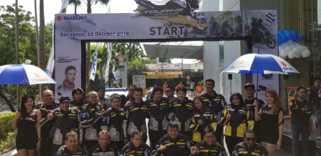 Bertempat di Hotel Harris Gubeng Surabaya (22/10/2018), seremoni pelepasan start rombongan tim GSX150 Bandit Teman Satu Tujuan dipimpin oleh Bp. Aceng Ulumudin selaku Sales Area East Java, Sulawesi & East Indonesia 2W Section Head PT. SIS, “Kami sangat bangga kota Surabaya dipercaya untuk menjadi titik awal perjalanan sekaligus pelepasan tim GSX150 Bandit Touring Teman Satu Tujuan. Perjalanan cukup jauh ini berbeda karena ada 2 lady bikers di dalamnya, sebagai bukti bahwa Suzuki GSX15 Bandit itu nyaman dan bisa digunakan untuk touring oleh siapa saja. Motor ini siap menjadi teman perjalanan setiap saat yang dapat diandalkan untuk harian hingga touring jarak jauh sekalipun”.