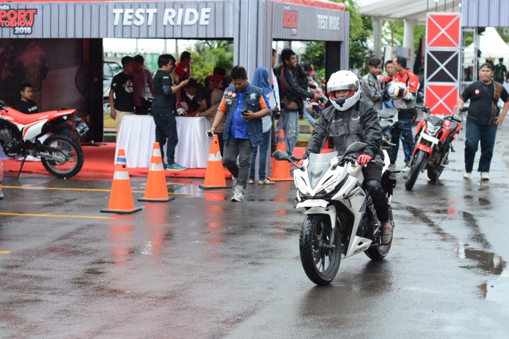 Bagi pengunjung yang ingin merasakan secara langsung pengalaman berkendara dengan motor sport Honda, telah disediakan juga arena riding test dengan berbagai hadiah menarik.