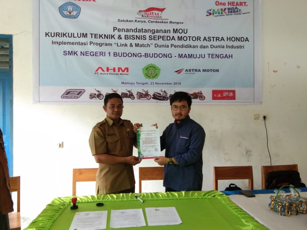 “Dengan adanya kerjasama ini, ditopang dengan kurikulum teknik dan bisnis sepeda motor Honda yang matang, kami harap siswa SMKN 1 Budong-budong dapat meningkatan kompetensi siswa kedepan dalam bersaing dan bersanding di dunia industri kerja” ujarnya.