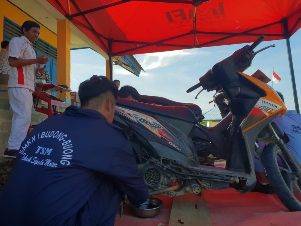 Selain itu, diadakan juga servis dan oli gratis dari astra motor untuk masyarakat sekitar SMKN 1 Budong-budong. Dalam pelaksanannya Siswa TBSM diikutsertakan dalam kegiatan servis ini sebagai media pembelajaran mereka dalam menangani sepeda motor, juga didampingi oleh mekanik AHASS yang sudah berpengalaman.