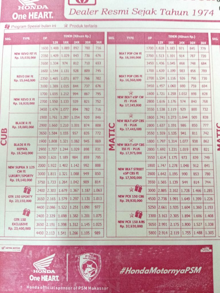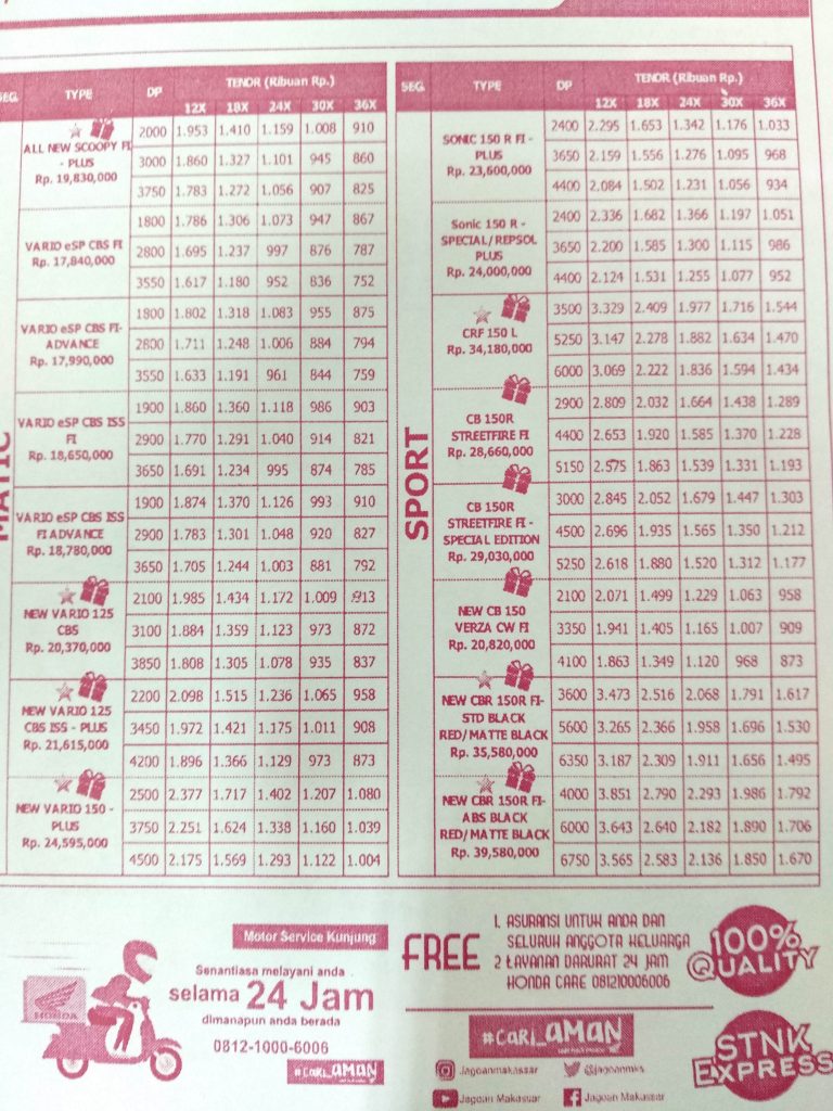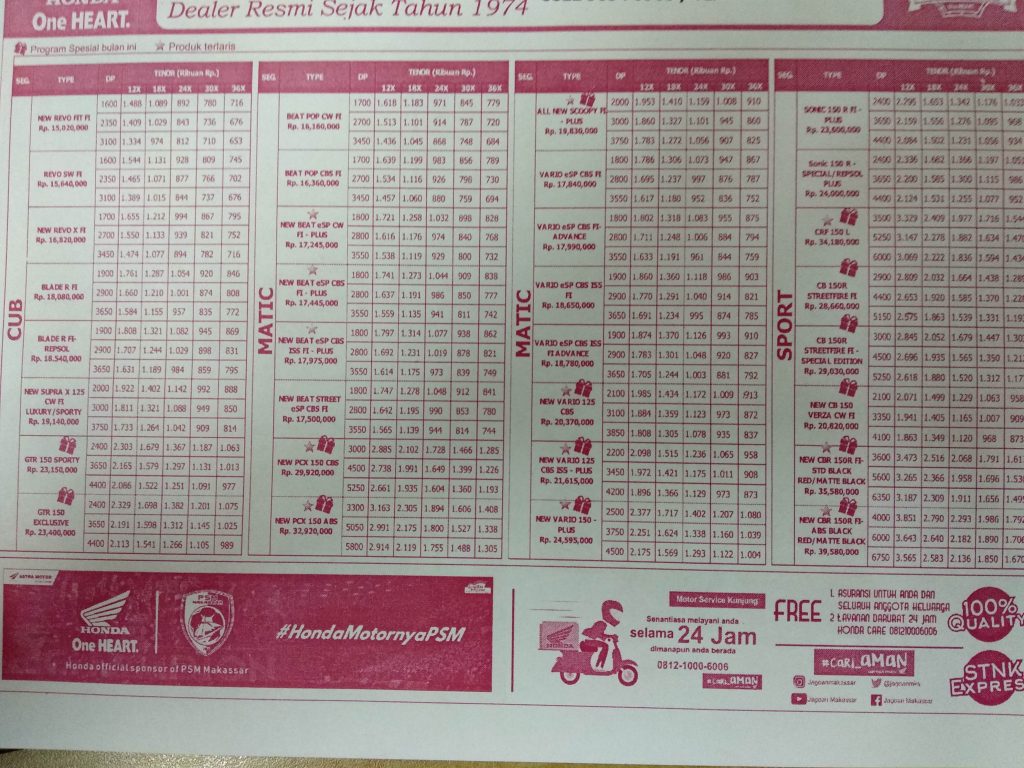 Daftar Harga Terbaru Motor Honda Makassar 2019 dan Cicilannya