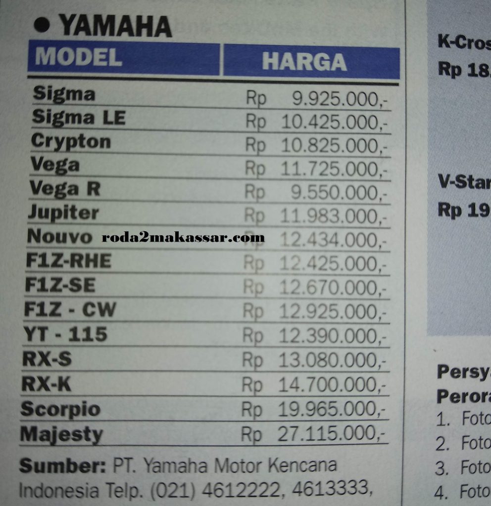 Langsung saja kita lihat line up motor apa saja yang dijual oleh pabrikan Jepang dan berapa harganya saat itu, harga berikut adalah harga tahun 2003 bulan Mei dan OTR Jakarta pastinya.