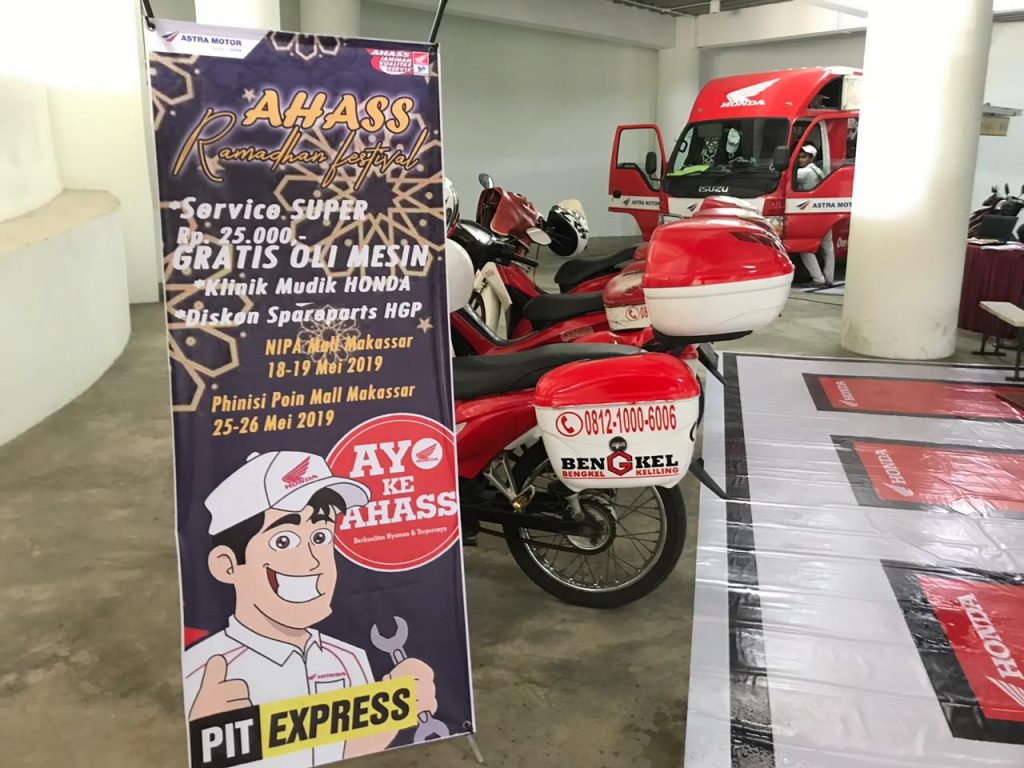 Roda2Makassar.com – Astra Motor Makassar sebagai main dealer sepeda motor Honda untuk wilayah SulSelBarTra dan Ambon, menemani umat Islam Makassar di bulan suci Ramadhan dengan acara Honda Ramadan Fest 2019 (HRF). Astra Motor memberikan promo bagi pengunjung HRF 2019 dengan Service Motor Honda Cuma 25ribu Gratis Ganti Oli di AHAS Mobile Service. Promo ini berlaku selama dua hari, 18-29 Mei 2019sesuai dengan berlangsungnya HRF 2019 di Nipah Mall Jl Urip Sumoharji Makassar.