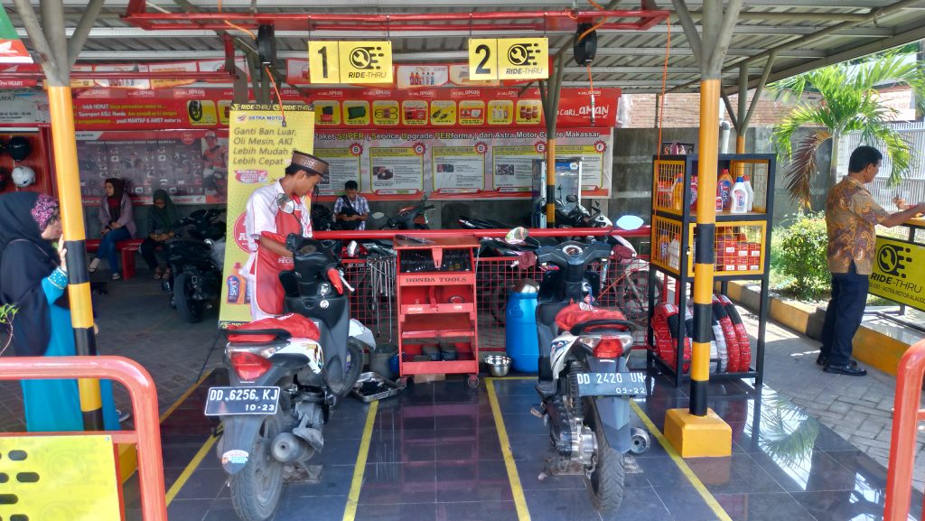 Kini Astra Honda Authorized Service Station (AHASS) yang merupakan bengkel resmi sepeda motor Honda memberikan pelayanan baru pada konsumen, yaitu “RIDE THRU” yang merupakan layanan tanpa antri khusus bagi konsumen AHASS yang hanya perlu melakukan penggantian oli atau spare part tertentu seperti Oli Mesin, Gear Set, V-Belt, Ban, Kampas Rem, Water Coolant, Busi, Aki dan Saringan Udara.