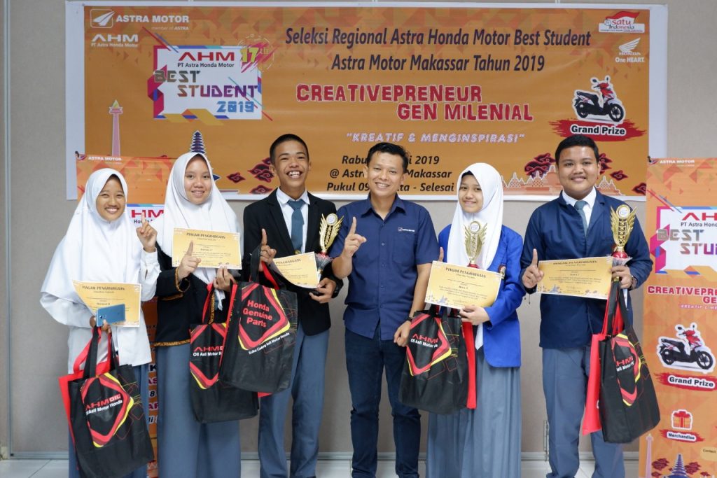 Roda2makassar.com – Astra Motor Makassar sebagai main dealer sepeda motor Honda untuk wilayah SulSelBarTra dan Ambon kembali menggelar kegiatan Astra Honda Motor Best Student (AHMBS) 2019. Setelah melalui beberapa tahapan seleksi, panitia regional menetapkan juara AHMBS regional Makassar asal SMA N 5 Takalar bernama Henri sebagai, sekaligus menjadi wakil Astra Motor Makassar area Sulsel, Sulbar, Sultra dan Ambon untuk bertarung dengan peserta regional dari seluruh Indonesia di Jakarta Astra Honda Motor (AHM), pada 22 Juli 2019.