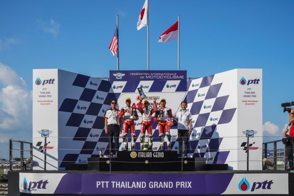 Roda2makassar.com  Dua pebalap muda binaan PT Astra Honda Motor (AHM) berhasil mempersembahkan podium pada dua balapan yang digelar pada Asia Talent Cup (ATC) 2019 seri keempat di Chang International Circuit, Buriram, Thailand (5-6/10). Bendera Merah Putih dikibarkan Herjun Atna Firdaus dari podium kedua pada balapan pertama dan Afridza Munandar dari podium ketiga pada balapan kedua.Jalannya balapan pada balapan pertama (5/10) cukup sulit bagi para pebalap muda binaan Astra Honda. Adanya insiden yang terjadi ketika jalannya balap dimulai membuat para pebalap harus berhati-hati.