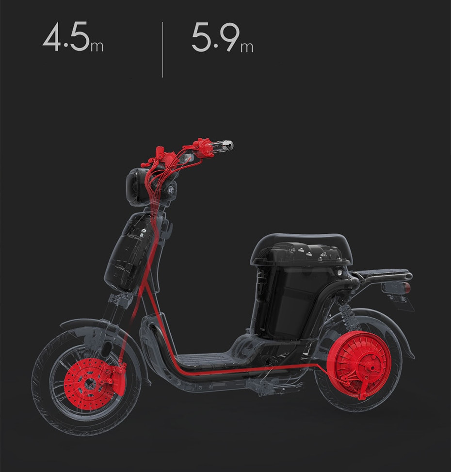 Xiaomi HIMO T1 memiliki teknologi rem yang sangat canggih. Mulai dari Front Disc break dan Rear Drum break dan memiliki sensor sensitiv. Selain itu saat keadaan jalan kering maupun basah memiliki treatmen yang berbeda, saat keadaan kering 4.5m dry break distance sedangkan 5.9m wet break distance.