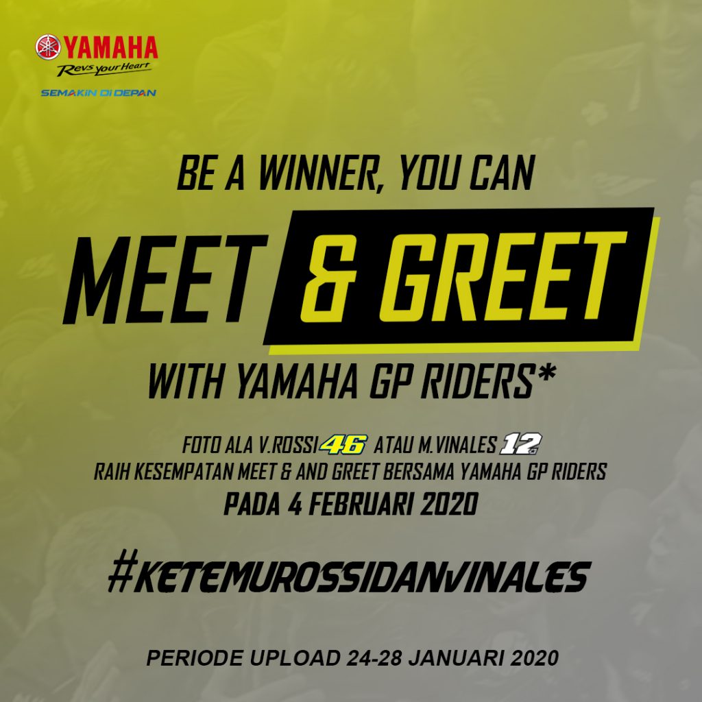 Para fans yang beruntung berkesempatan untuk bertemu langsung dengan Valentino Rossi dan Maverick Vinales pada tanggal 4 Februari 2020. Caranya sangat mudah seperti yang sudah disiapkan Yamaha yaitu :