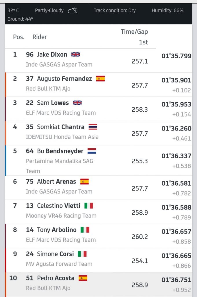 Dan hasilnya adalah dia berada diposisi ke 10 dari hasil kualifikasi hari ini, tapi tenang, fans tau Pedro acosta adalah tipe petarung pastinya bakal jos saat balapan besok.
